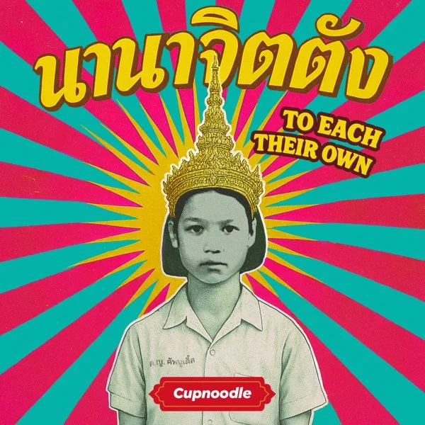 ชื่อ Cupnoodle มาจากช่วงโควิดเลยค่ะ นั่งกินบะหมี่กึ่งฯ กับเพื่อนบ่อยมาก แล้วรู้สึกว่ามันมีอะไรบางอย่างที่ลิงก์คนเข้าด้วยกัน มันมีความ Nostalgia อุ่นๆ เหมือนความทรงจำร่วมกัน จำได้ไหมว่าตอนนั้นเราทุกคนอยู่ในช่วงยากลำบาก แล้วก็ซดบะหมี่กึ่งด้วยกัน เป็นช่วงที่เรากำลังก้าวข้ามอะไรบางอย่าง เหมือนก่อนที่น้ำร้อนจะเทลงไปในเส้นหมี่ มันต้องใช้เวลา ถึงจะกลายเป็นอาหารที่พร้อมกิน เหมือนเราตอนนั้นที่ยังไม่กล้าแสดงออก แต่พอได้เวลาเราก็เหมือนหนอนที่กลายเป็นผีเสื้อค่ะ