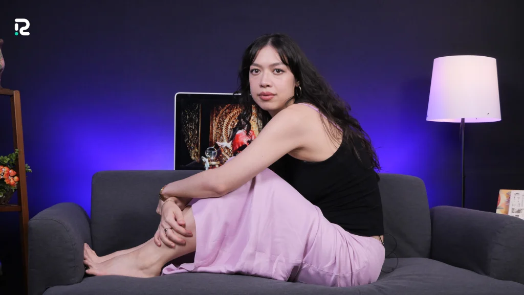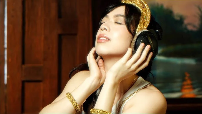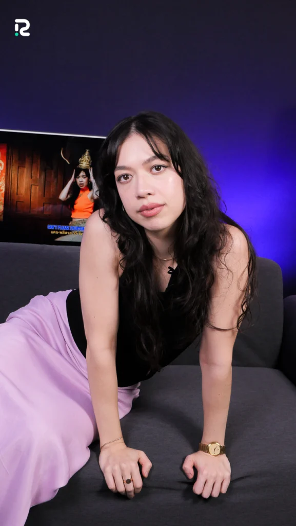 “ถ้ายิ่งกลัว ยิ่งเขิน ยิ่งเดา ยิ่งต้องไปให้สุด” ก็เลยแบบว่า “ไป จัดไปค่ะ!” (หัวเราะ) เลยใส่ชฎาเข้าไปเลย และใน MV ก็มีทั้งหมด 3 ลุค ซึ่งแต่ละลุคก็ตั้งใจให้เป็นการผสมผสานระหว่างความเป็นไทย ความโมเดิร์น และความเป็น ตัวเรา เพราะจริงๆ เราเป็นลูกครึ่ง และเราอยากให้เพลงนี้สื่อสารถึงประสบการณ์แบบ hybrid ของเรา ทั้งในด้านภาพและเสียง มันไม่ใช่แค่เพลง แต่มันคือวิธีที่เราเล่าเรื่องของตัวเองออกมาผ่านศิลปะค่ะ ทุกอย่างในเพลงนี้เราดีไซน์และเขียนมันด้วยตัวเองหมดเลยค่ะ